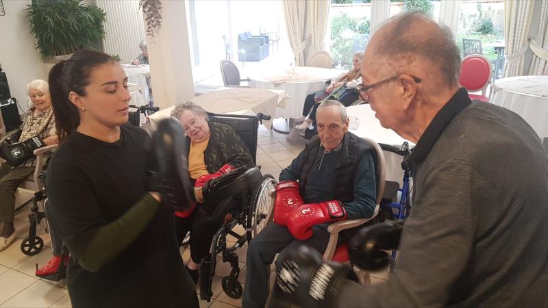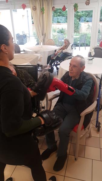Cet après-midi, nos résidents ont enfilé les gants pour une séance de boxe adaptée pleine d’énergie et de bonne humeur !